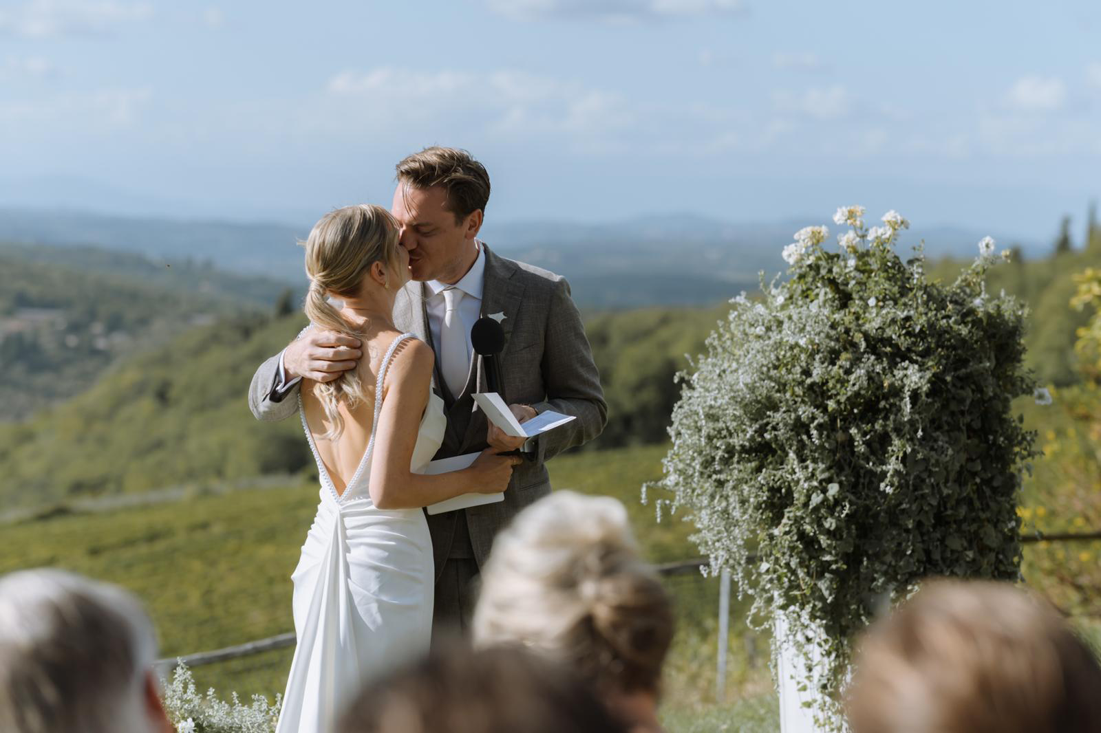 Ceremonie in Toscane: white florals, panorama views & live muziek