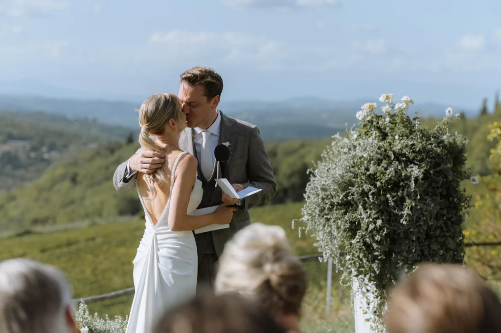 met uitzicht over valleien en landschappen die je alleen vindt bij echte Tuscan hilltop weddings.