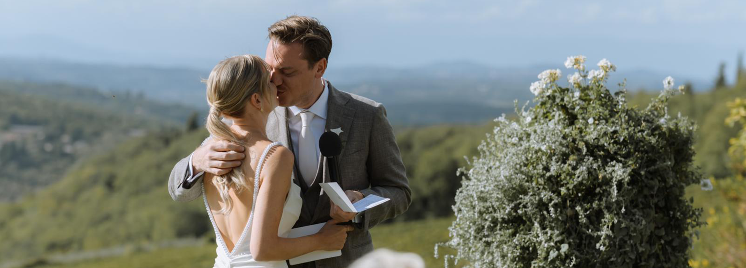 De ceremonie vond plaats op een open plek boven op een Toscaanse heuvel,