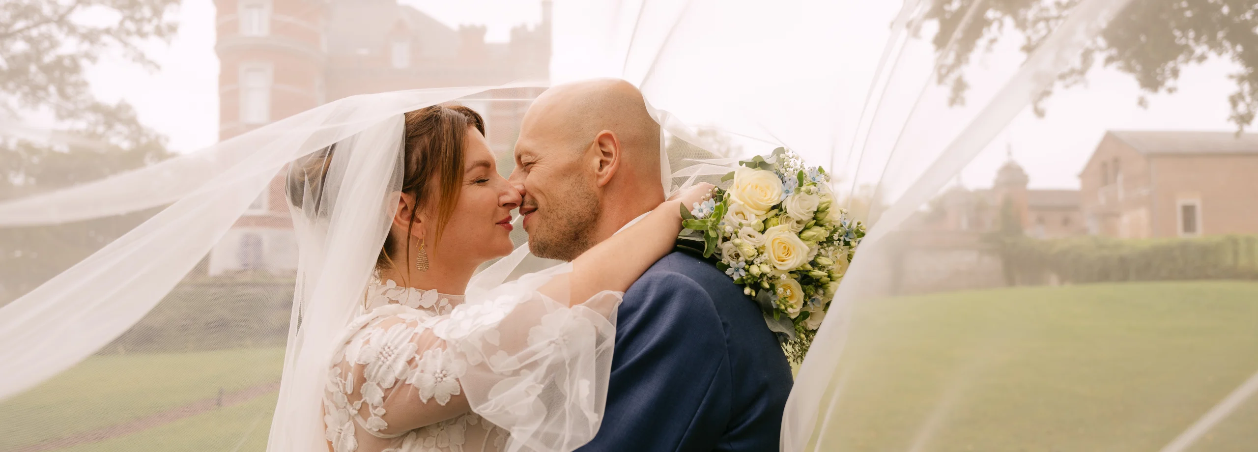 Een look die naadloos aansloot bij haar persoonlijkheid én de romantische sfeer van haar bruiloft.